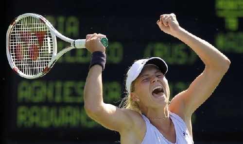 | Veselje Marije Kirilenko po zmagi nad Agnieszko Radwansko |